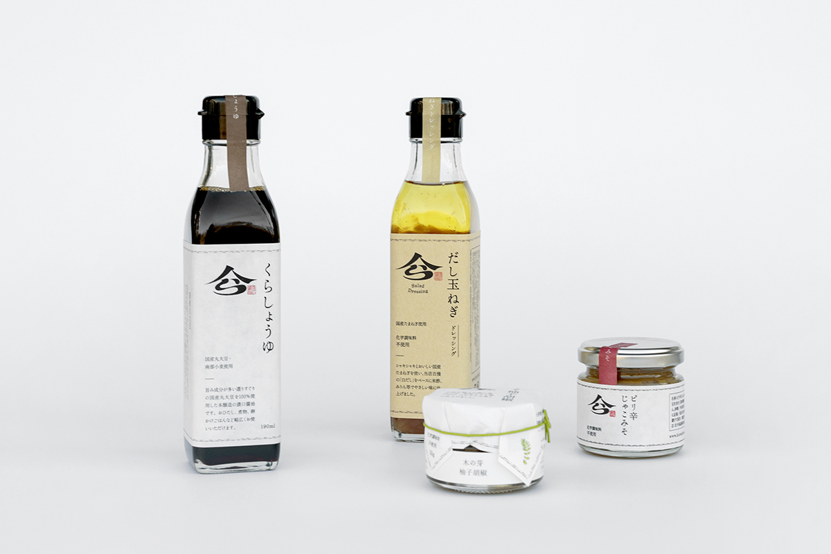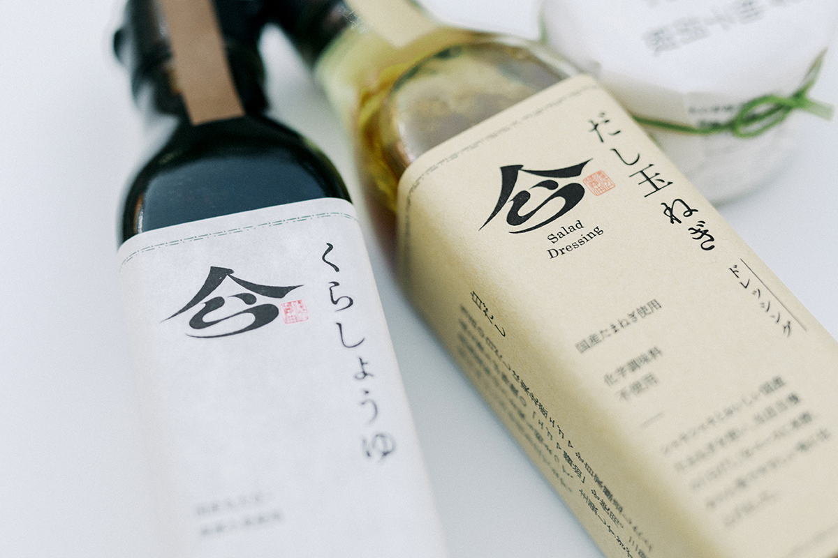 調味料ブランド「くら」のロゴは同様の構成にしながら、伝統あるお醤油屋さんの丁寧なものづくりを表現する佇まいを目指しました。