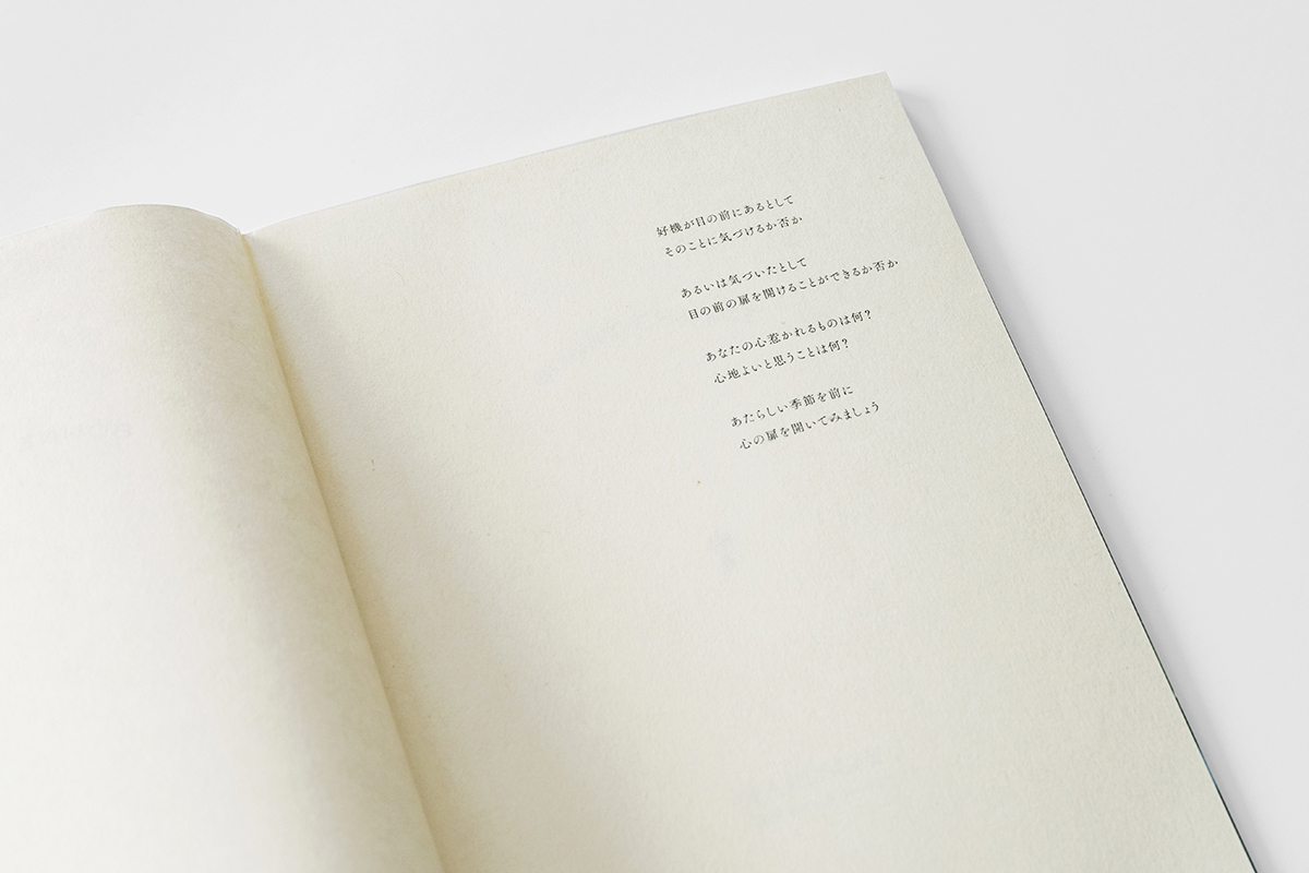 カタログでは本の上面が綴じられたアンカット製本を採用し、未知への扉を開いていくようにページをめくってく造本設計としました。